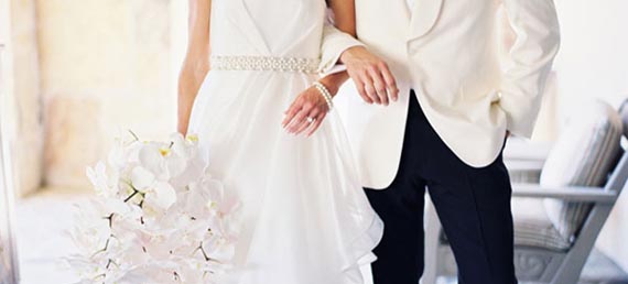 Прекрасный нежной вариант свадьбы с тоном чёрно-белого. Жених в черных брюках и белом пиджаке смотрится на нежных цветах очень замечательно, и необычно подчеркнута бабочка. Как мы видим свадьба очень нежная, романтическая. Очень хорошо подобрана нежная цветовая гамма. Просто даже можно сказать, белоснежная. Будет очень хорошим образцом, кто планирует свою свадьбу именно в таких цветах!